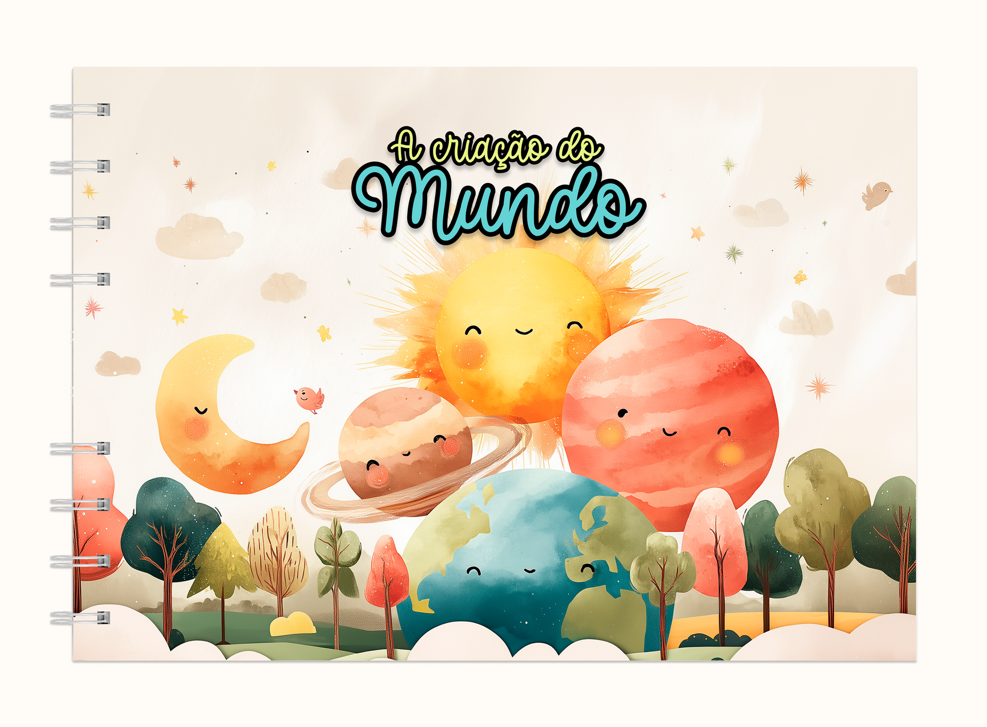 A Criação do Mundo é um livro cristão para colorir que convida adultos e crianças a explorarem o relato da criação de forma criativa, divertida e cheia de propósito. Com personagens celestiais encantadores e cenas inspiradas no Gênesis, cada página é um lembrete da beleza da vida e da grandiosidade de Deus.